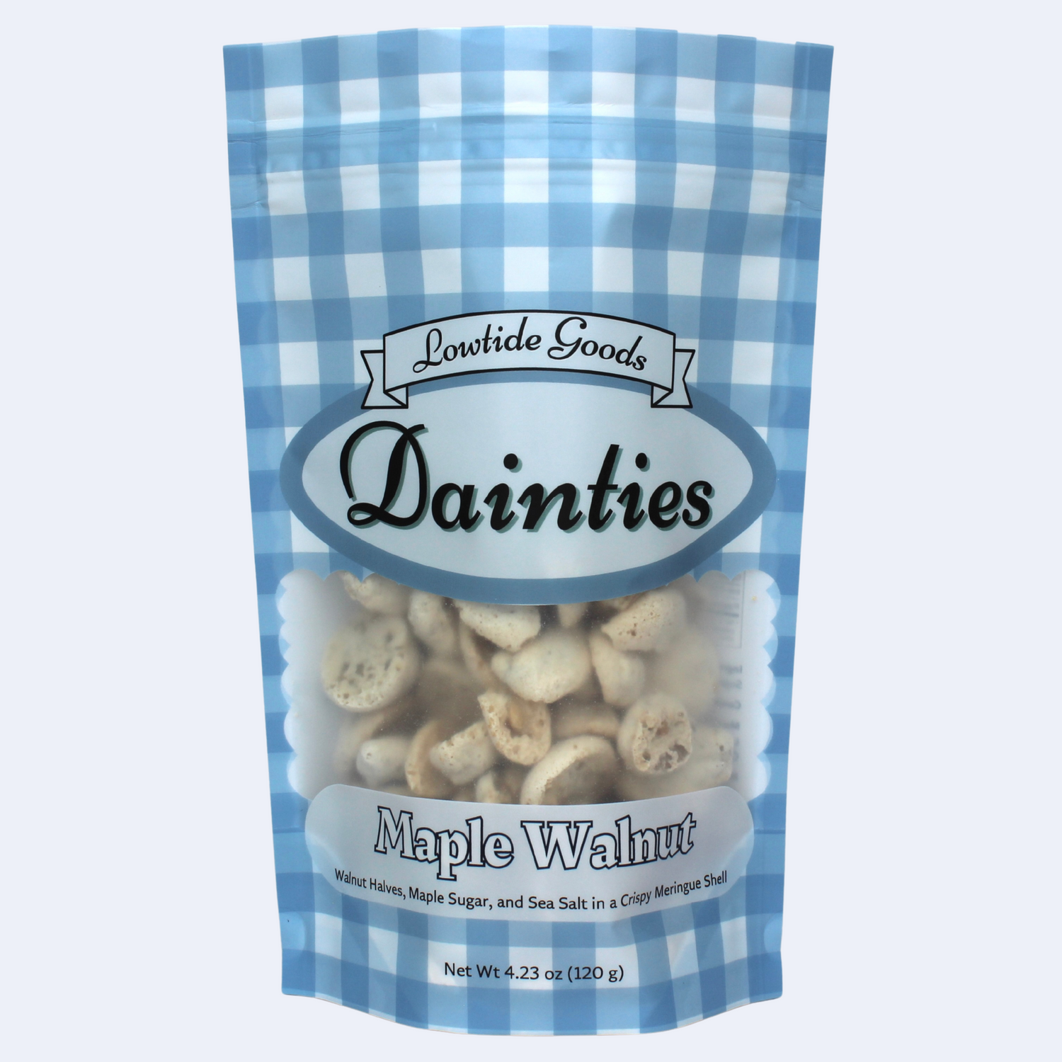 Walnut Halves, Real Maple Sugar, and Sea Salt in a Crispy Meringue.